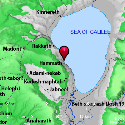 HAM'MATH, warm springs, s. of the city of Tiberias and on the shore of the sea of that name, at the warm springs, 69 ms. n. of Jerusalem. Strong's Hebrew H2575: Chammath"hot (spring)," a city in Naphtali |